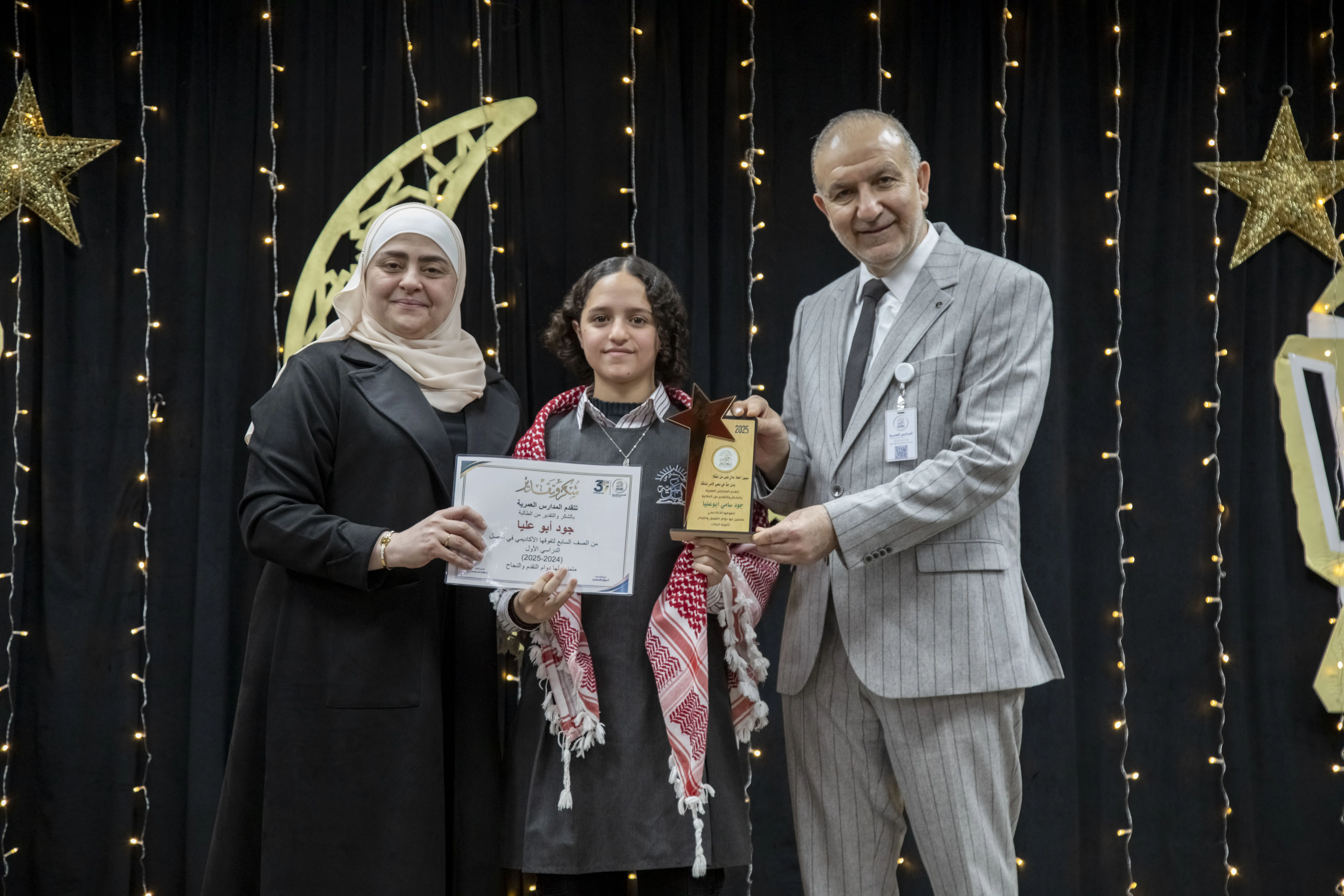 برعاية الدكتورة هيام رمضان عضو هيئة البنك الإسلامي وحضور عطوفة محافظ معان حسن الجبور ، وثلّة من مدراء ومديرات المدارس العمرية ،احتفلت ثانوية البنات بتفوق كوكبة مميزة من طالبات العمرية اللواتي أبدعن وتألقن بنتائجهنّ.
