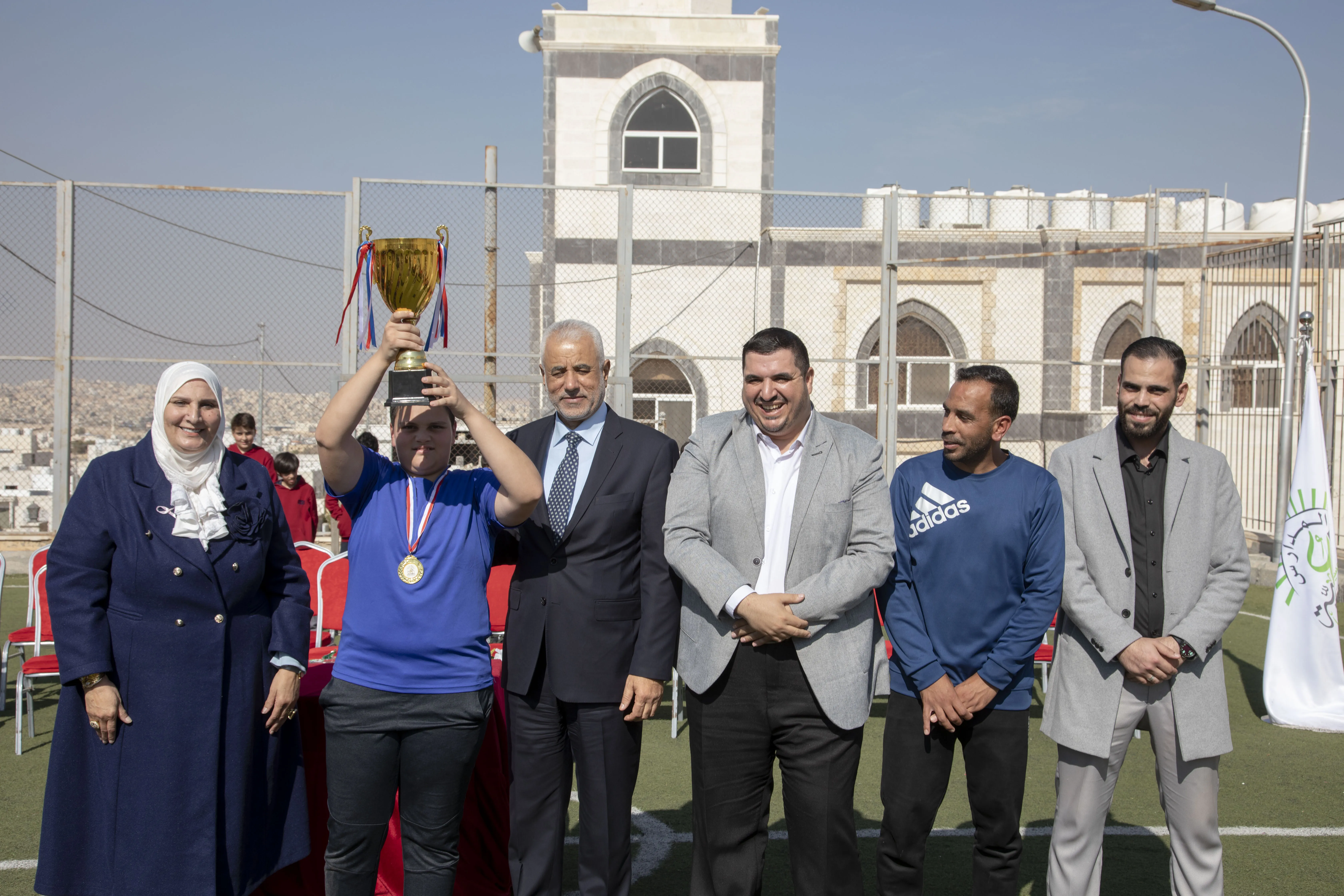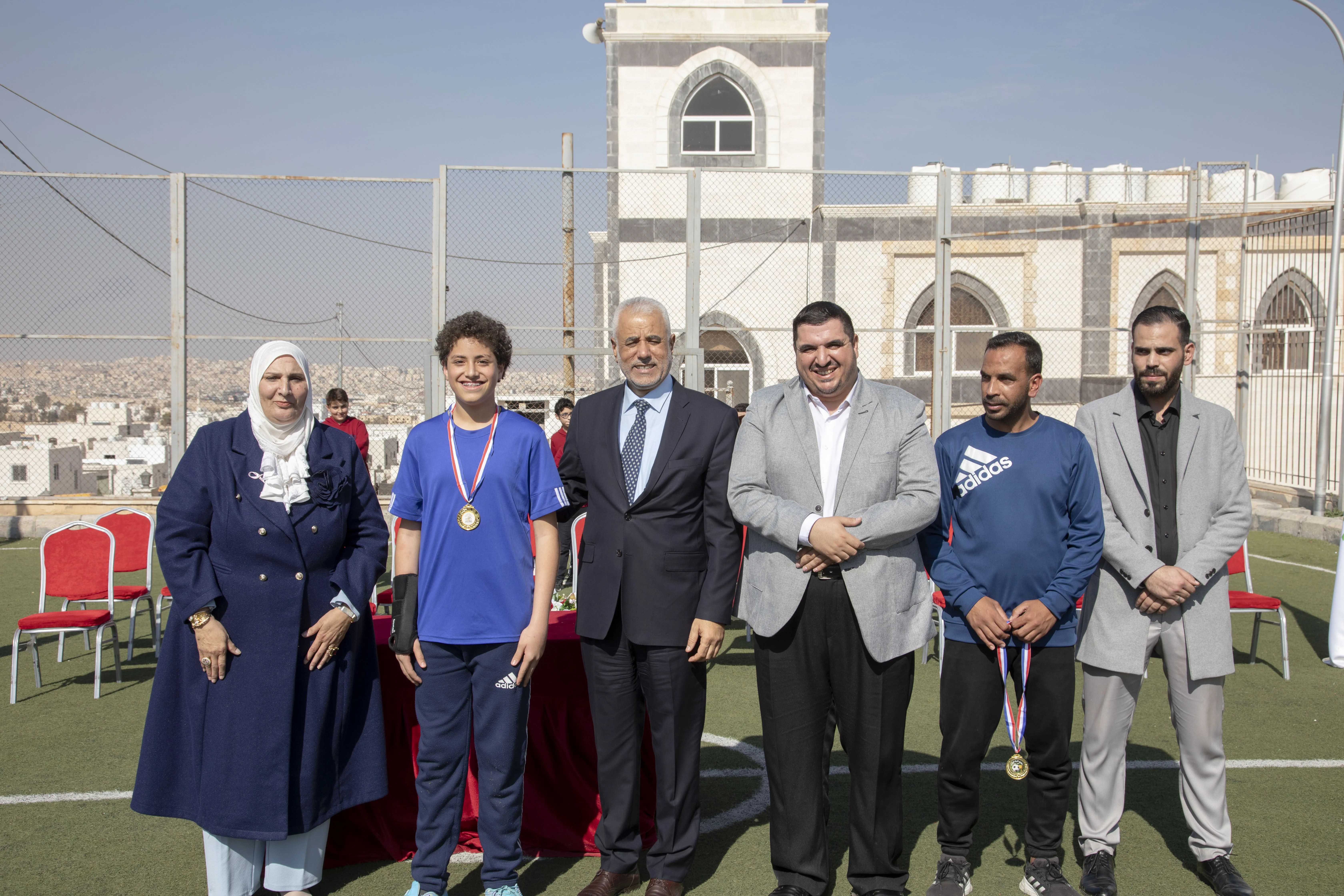 Amid a festive atmosphere, the 7th Grade "H" team was honored as the champion of the Al-Omareyah Champions League in football, under the gracious patronage of Dr. Hayam Ramadan, Board Member of Al-Omareyah Schools. This achievement came after a strong competition with the 7th Grade "J" team.